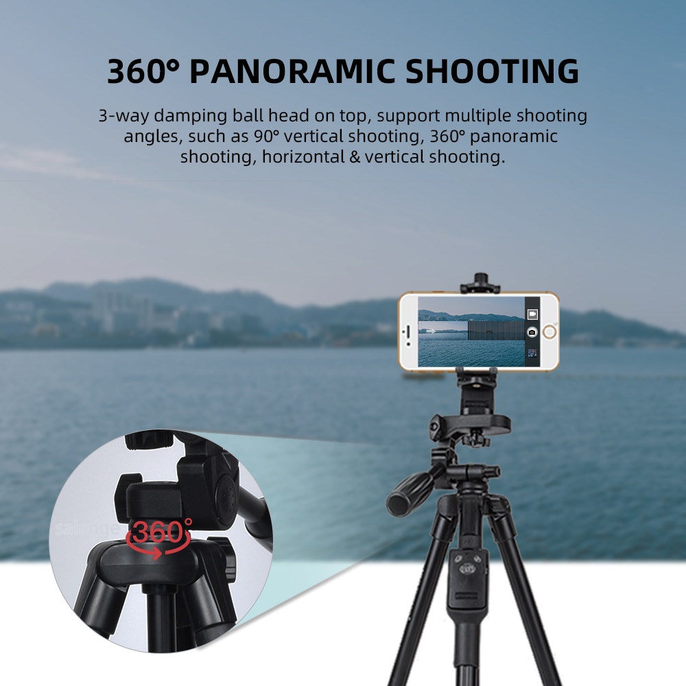 - Tripod kéo dài ba phần chân với nhiều khóa cố định linh hoạt.