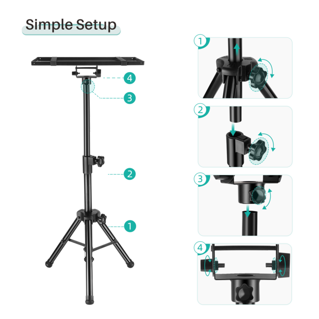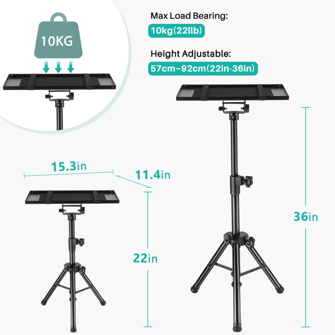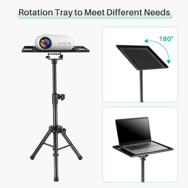 Chân giá VANKYO PT-30 có thể được điều chỉnh theo chiều cao bạn muốn phù hợp từ 55cm đến 1.2m theo nhu cầu của bạn. Khay đỡ cũng có thể xoay linh hoạt 180° nhờ thiết kế mới. Khay đỡ này được làm từ thép cao cấp được sơn tĩnh điện màu đen có thể tháo lắp dễ dàng để gắn vào chân đế, có lót tấm nệm bảo vệ máy chiếu. Tải trọng đỡ của chân máy Vankyo PT-30 lên tới 10kg.