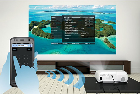 Thông qua ứng dụng Epson iProjection, thiết bị thông minh của bạn có thể được sử dụng để làm điều khiển từ xa.