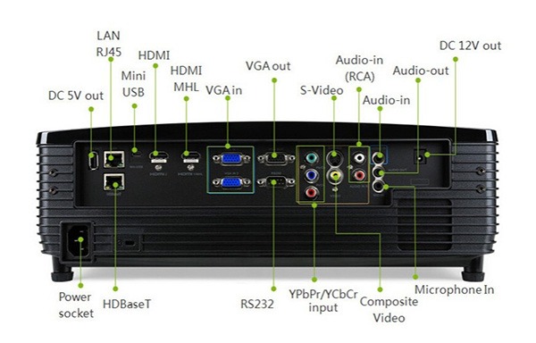 | Cổng giao tiếp | Cổng kết nối: Analog RGB/Component Video (D-sub) x 2, Composite Video (RCA) x 1, S-Video (Mini DIN) x 1, Component (3 RCA) x 1, HDMI/MHL (Video, Audio, HDCP) x 1, HDMI (Video, Audio, HDCP) x 1, HDMI/MHL (Video, Audio, HDCP, Internal) x 1, PC Audio (Stereo mini jack) x 1 |