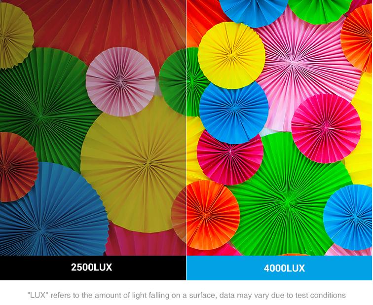 (*) Được thiết kế cho mục đích xem phim, ca nhạc, bóng đá, xây dựng rạp chiếu tại gia, phòng karaoke; yêu cầu phòng chiếu có thể điều chỉnh độ sáng ở mức nhẹ.