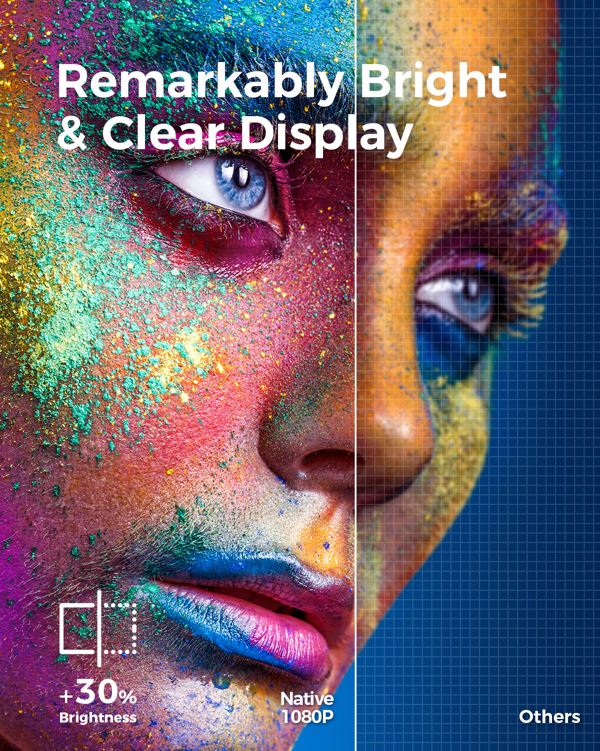 Trải nghiệm xem siêu sáng 5500 Video Lumens: Vankyo Leisure 470 có độ sáng 5500 Lux sáng hơn 80% so với các máy chiếu tương đương khác. Với công nghệ màu nâng cao và độ tương phản 8000:1, máy chiếu cung cấp hình ảnh với chất lượng màu sắc sống động và độ tương phản cao. Máy có độ phân giải gốc là 1920*1080, hỗ trợ 4K. Tỷ lệ khung hình là 16:9/4:3. Tuổi thọ của bóng chiếu lên đến 50.000 giờ.
